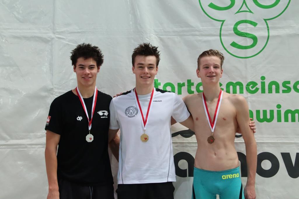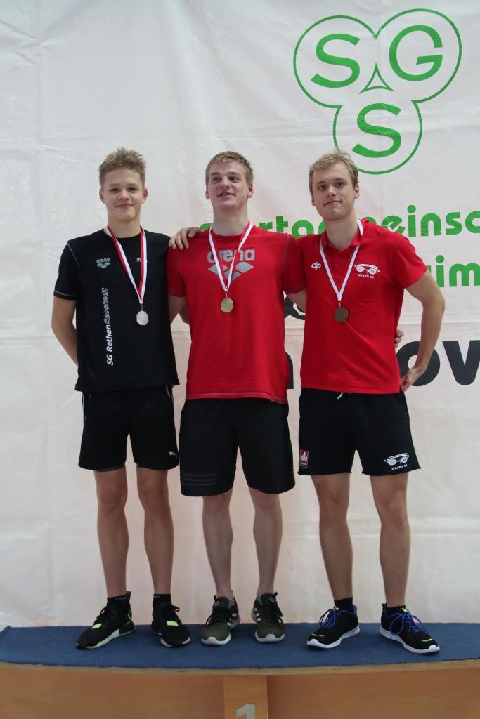 Mit gleich vier offenen Meistertiteln war Ruben Reck (1996) auch in diesem Jahr wieder einer der erfolgreichsten Titelträger. Die 100 Freistil schwamm er in neuer Bestzeit von 0:50,09 und war damit fast eine Sekunde schneller als der Zweitplatzierte Alaa Maso (2000) der nach 0:51,08 anschlug. Auf seinen Paradestrecken den 200 Brust in 2:15,76 und 100 Brust in 1:01,27 war er zwar noch nicht auf Bestzeitenkurs unterwegs, aber jeweils deutlich vor den Zweitplatzierten im Ziel. Mit seinem weiteren Sieg über 200 Lagen rundete Ruben ein erfolgreiches Wettkampfwochenende ab. Ebenfalls mit vier offenen Siegen präsentierte sich Sara Safrankò und unterstrich mit diesen Starts auch gleich ihre Vielseitigkeit. Für die 50 Rücken, 100 Lagen, 50 Freistil und 200 Freistil konnte sie sich jeweils die Goldmedaille in ihrem Jahrgang 2003 und in der offenen Wertung abholen. Ein toller Erfolg für Sara. Der dritte im Bunde der vierfach erfolgreichen Titelträger war der Rückenspezialist Lukas Knölker (2001). Er war über 50, 100 und 200 Rücken nicht zu schlagen und holte sich als kleine Zugabe dann auch noch den Titel über 100 Schmetterling, wo er in 0:56,88 mit einer neuen persönlichen Bestzeit anschlug.