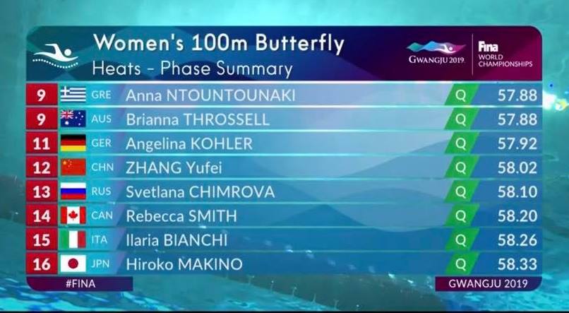 ++ UPDATE 21.07. ++ Im Vorlauf über die 100m Schmetterling konnte Angelina nur 7 Hundertstel Sekunden über ihrer bisherigen Bestzeit in 0:57,92 min anschlagen und sich auf dem 11. Platz für das Halbfinale am Nachmittag qualifizieren. Herzlichen Glückwunsch! Der ZDF Livestream übertragt diese Wettkämpfe ab 13:00 Uhr MESZ.
