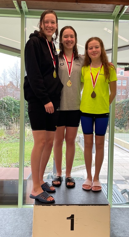 In der offenen Wertung über 400 m Freistil der Damen gab es gleich zwei Goldmedaillen zu vergeben. Joline Noelle Sue (2007) von Aqua Sports Delligsen und Lilli Krüger (2008) von der Eintracht Hildesheim beendeten ihr Rennen beide mit einer Zeit von 4:54,99. Auf Platz 3 folgte Finnja Zimmerling (2007) vom Grafen Schwimmteam in 5:04,44. Was die Damen können, sollte auch bei den Herren problemlos wiederholbar sein. Philipp Wallenhorst (2006) von der SGS Langenhagen und Max Oppermann (2006) von Aqua Sports Delligsen beendeten ihr Rennen gemeinsam in 4:35,18 und holten sich beide eine Goldmedaille ab. Bronze ging hier an Sebastian Dominik Besdo vom SV Burgwedel in 4:40,00.