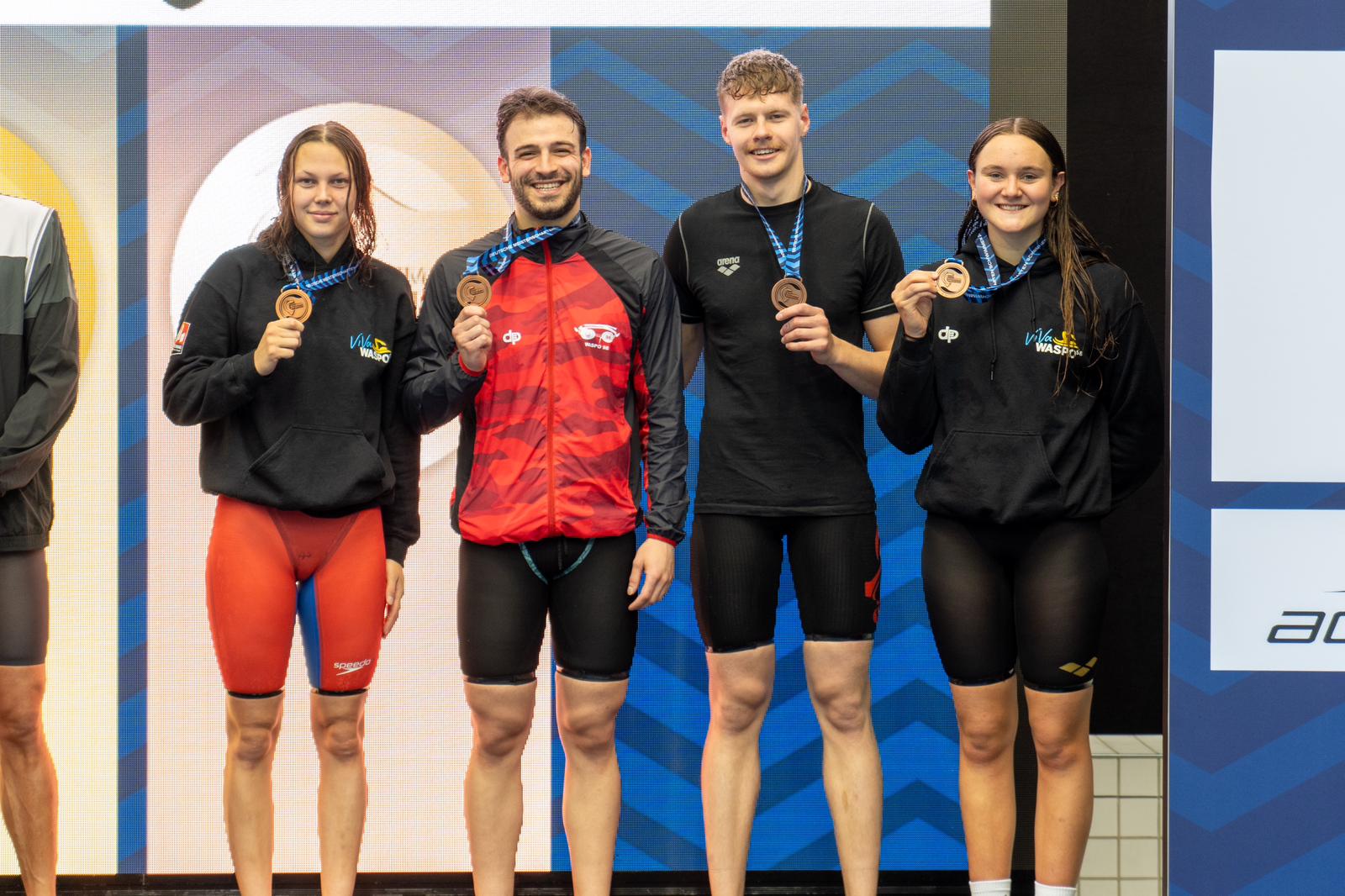 Die 4x100m Freistilstaffel der Damen mit Alena Gemici, Greta Marlene Kolbeck, Victoria Suchantke und Lilly-Fay Wallbaum holte sich in 3:49,87 die Goldmedaille. Mit dieser Zeit errang das Damenteam einen neuen Landesrekord. Silber erkämpfte sich die Mixedmannschaft über 4x100m Lagen mit Silas Dalig, Finn Wendland, Anisa Sabovic und Mara Sophie Brandes in 4:05,92 und die Bronzemedaille nahmen Markus Kriks, Alaa Maso, Alena Gemici und Lilly-Fay Wallbaum mit der 4x100m Freistil-Mixed-Staffeln in Empfang.