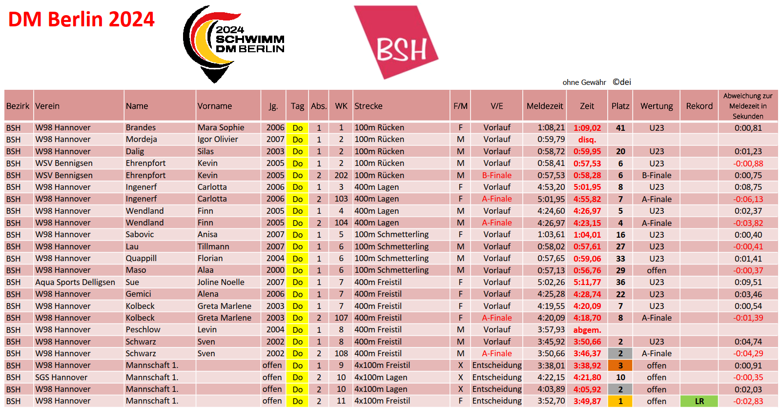 Wir gratulieren allen Aktiven aus den BSH-Vereinen zu den tollen Ergebnissen am ersten Tag der DM 2024.