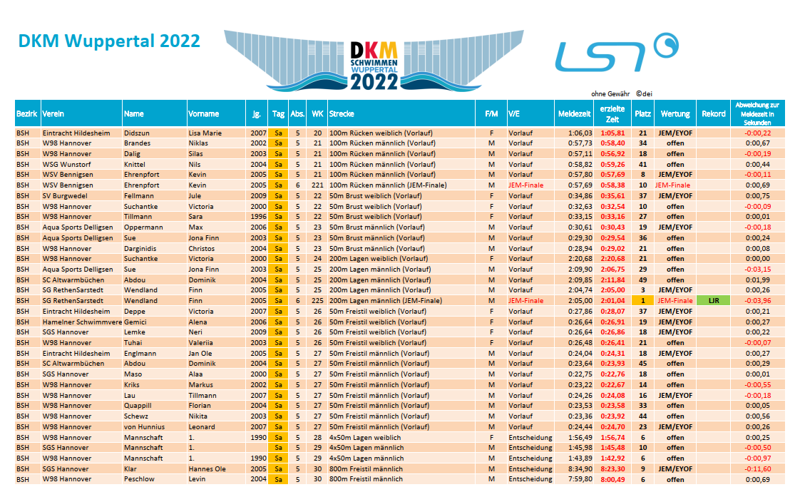 Kevin Ehrenpfort (WSV Bennigsen, Jg. 2005) konnte im JEM-Finale über 100m Rücken in 0:58,38 min auf den 10. Platz schwimmen, nachdem er bereits im Vorlauf eine neue Bestzeit von 0:57,69 min erzielte.