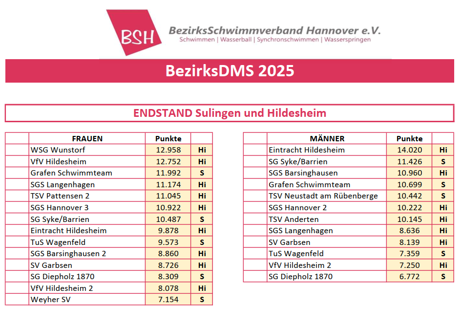 Die Siegerehrung der drei erstplatzierten Mannschaften (Gesamtergebnis aus Hildesheim und Sulingen) findet im Rahmen der Bezirksmeisterschaften am Samstag 7. März 2026 vor Beginn des ersten Abschnittes statt.