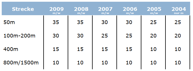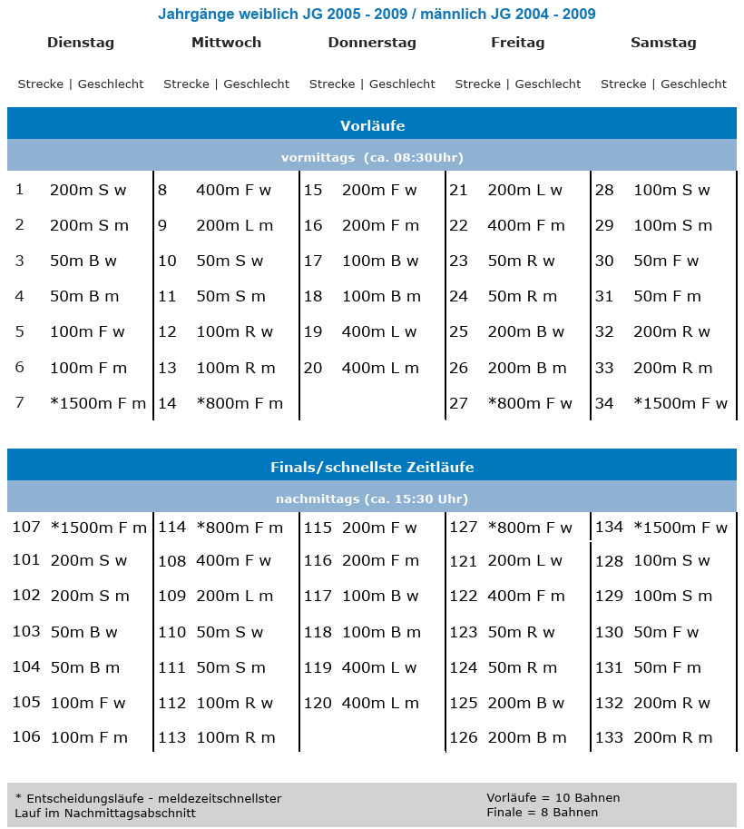 Startberechtigt sind die Jahrgänge 2005 bis 2009 weiblich und 2004 bis 2009 männlich. Qualifikationszeitraum 26.10.2021 bis 08.05.2022. Es gelten die folgenden TOP-Beschränkungen für die Teilnahme: