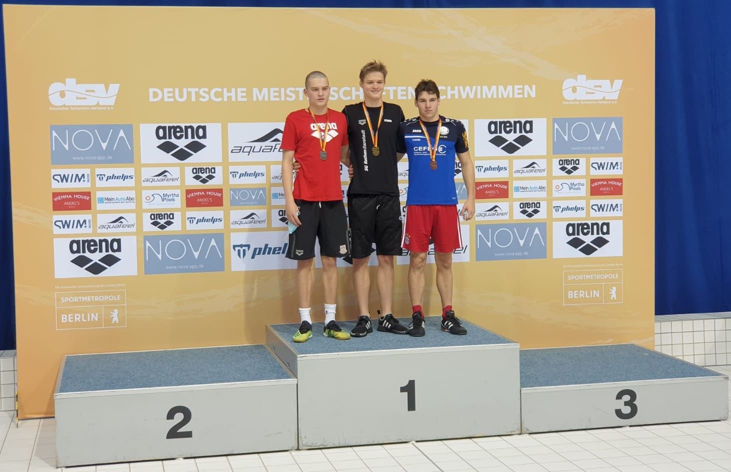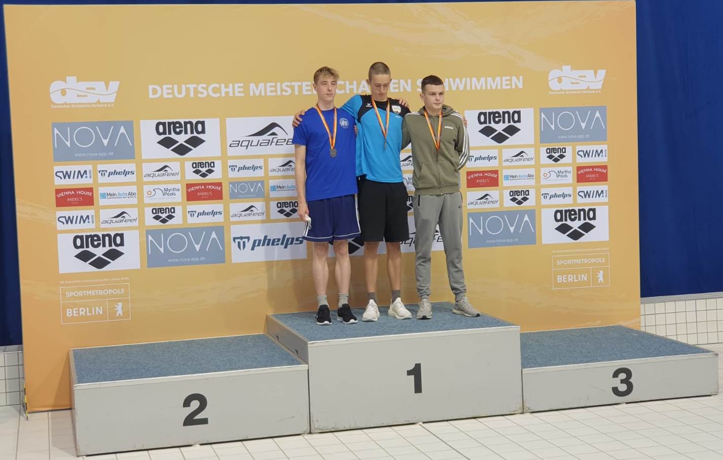Glückspilz Alexander Volkov (2006, W98 Hannover) profitierte im Finale über 100m Rücken vom Fehler des vermeintlichen Siegers, der wegen einer zu langen Tauchstrecke disqualifiziert wurde. Alexander wurde in neuer Bestzeit von 1:00,73 min mit der Bronzemedaille belohnt.