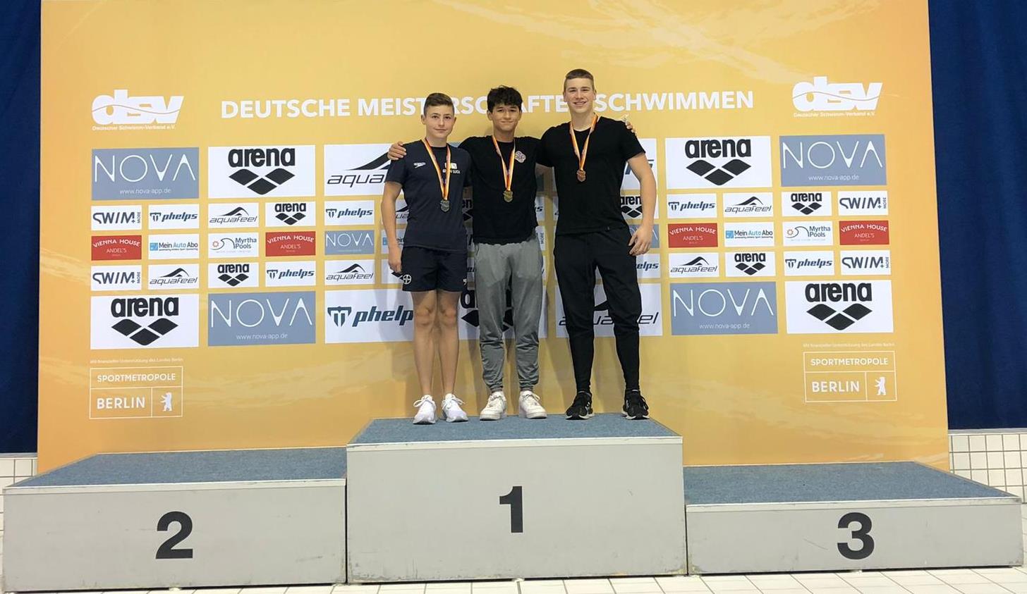 Ebenfalls über 100m Schmetterling konnte Leonard von Hunnius (2007, SGS Langenhagen) überzeugen. Erstmals unter einer Minute schmetterte er am Vormittag in 0:59,38 min ins Ziel, diese Zeit konnte er im Finale nochmals verbessern. In einer Zeit von 0:59,33 min profizierte Leonard von der Disqualifikation des ursprünglich vor ihm Platzierten und konnte auf dem Siegerpodest die Bronzemedaille in Empfang nehmen.