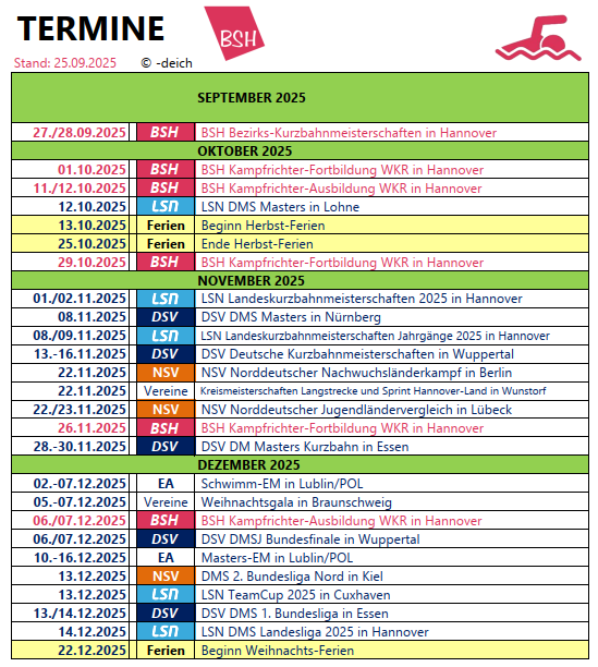 Vereine, die ihren Vergleichswettkampf in den BSH-Terminplan aufnehmen lassen möchten, melden den Termin bitte direkt an den BSH-Webmaster.