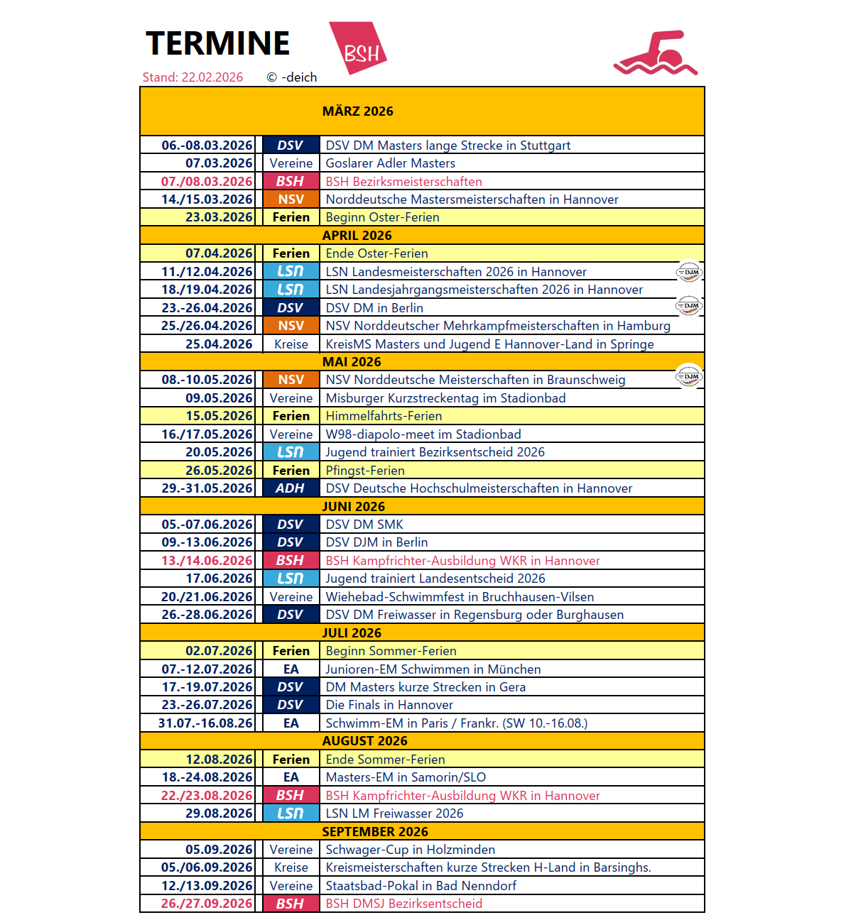 Vereine, die ihren Vergleichswettkampf in den BSH-Terminplan aufnehmen lassen möchten, melden den Termin bitte direkt an den BSH-Webmaster.