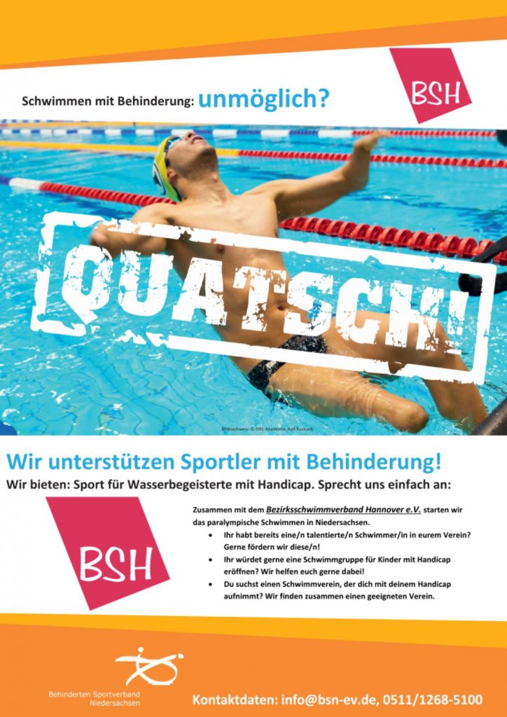 Wir bieten: Sport für Wasserbegeisterte mit Handicap. Sprecht uns, den Behinderten Sportverband Niedersachsen, einfach an: